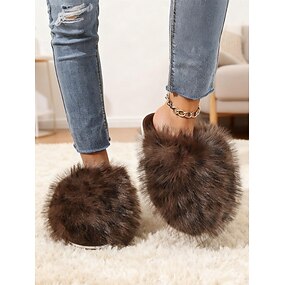 leopardmønster i pels til dame – myke, koselige innesko for avslapning, avslapning og komfort i kaldt vær