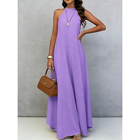 Dame Maxikjole Hvit kjole Kjole med A-linje Sommerkjole Grime kjole Ferie Fritid Bohem Daglig Ferie Løstsittende عادي Ermeløs Grimehals Marineblå Svart Hvit Lilla Sommer