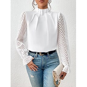 Skjorte Bluse Dressy topper Dame Hvit Rosa Navyblå عادي Netting Gate Daglig Mote Høyhalset Normal S
