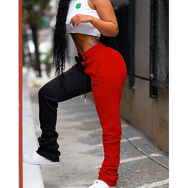 Dame Joggebukser Jogger Avslappet / Sportslig Hip Hop Full lengde Fargeblokk Snorer Sidelommer Komfort Mikroelastisk Sport Helg Gul + grå Svart + grå svart + gul Svart+Grønn Normal