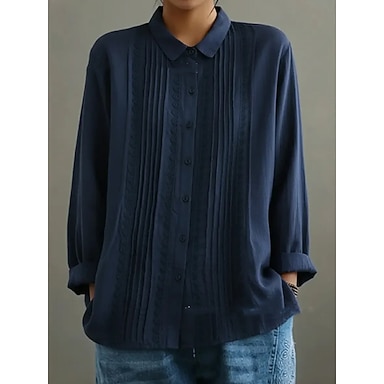 Dame Uformell skjorte Skjorte med knapper Bluse Blonde Lapper Helfarge عادي Bohem Ferie Årgang Langermet Aftæpning Lange topper utendørs Ferie Blå Hvit Gul Navyblå Lys Lilla Sommer Vår