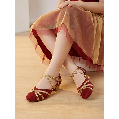 Ballroom-dansesko for dame og jenter med ankelstropp – profesjonelle dansesko med lav hæl for barn, egnet for ballroom-konkurranser og formelle dansearrangementer