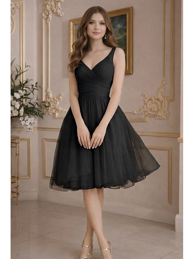 Anledning:Eksamen,Bursdag,Ball,Cocktailfest,Stil:Flørtete,Imperium,Plusstørrelse,Silhuett:A-linje,Kant / slep:Knelengde,Halslinje:V-hals,Stoff:Tyll,Ryggdetaljer:Glidelås,Ermelengde:Ermeløs,Utsmykning:Plissert,Tips:Fargene kan variere litt på grunn av forskjellige skjerminnstillinger,Kan kun håndvaskes,Egenskaper:Rosa kjole,