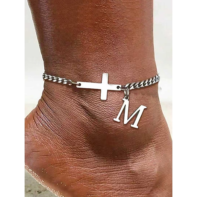 Personlig ankelkjede i rustfritt stål til dame med alfabetanheng, kors- og bokstavdesign, ideell julegave – 26 bokstaver tilgjengelig