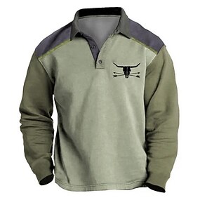 Herre Western Wear Poloskjorter Golf skjorte Langermet Poloskjorter Skjorter med krage Årgang Fritid Ferieklær Festantrekk 3D-utskrift Knapper Høst vinter Blå Brun Grønn