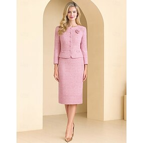Linjeform Knelengde Cocktail Kjole Kortermet Langermet Crew-hals Båthals Elegant Årgang Fest Krepp Polyester Kjole til brudens mor med Sløyfe(r)