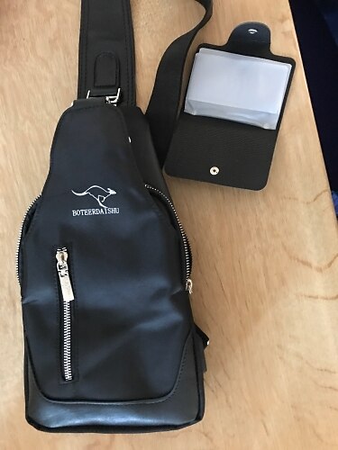 Super smart lille bryst taske med rum til iPad og batteri for opladning. Desuden en kortholder til 6 kort Super smart lille bryst taske med rum til iPad og batteri for opladning. Desuden en kortholder til 6 kort