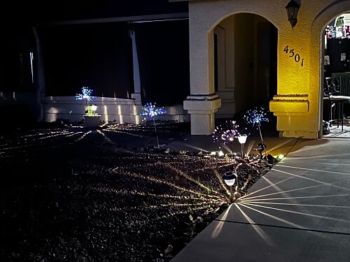 loved these lights, this is the 1st light I bought and was so impressed with it that I bought 9 more the same to put around my garden for Christmas. The photo does not do it justice as it doesnt show how illuminating and colourful it really is in the picture.