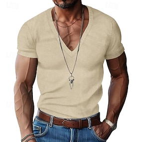 Herre T skjorte Ribbestrikket topp Muskelskjorte Ribbestrikket t-skjorte Kort Erme V-hals Sommer عادي Designer Grunnleggende Moderne Moderne Feriereise Gate Ut på byen Svart Hvit Grå Topp T-skjorte