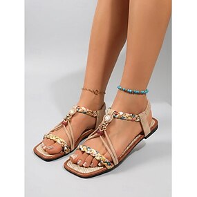 Damesandaler med strassmønster i bohemsk stil – glitrende sommersko med t-stropper og flettede detaljer for strand, reise og daglig komfort