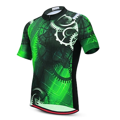 Herre Sykkeltrøyer Mønstret Nyhet Morsom Kortermet Sykkel Jersey Topper med 3 baklommer Fjellsykling Veisykling UV-bestandig Hurtigtørkende Tilbake Lomme Fukttransport sport Grønn Svart / Gul Klær
