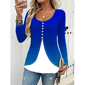 Dame T skjorte Knapper Trykt mønster Lag-på-lag Grafisk Gradert Årgang Stilfull Klassisk Langermet Crew-hals Vanlige topper Daglig Blå Rød Grønn Vår Høst Vinter