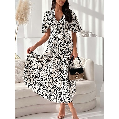 Dame Lang kjole Maxikjole Uformell kjole Kjole med A-linje Elegant Stilfull Fritid Feriereise Daglig Løstsittende Grafisk Kortermet V-hals Svart Gul Blå Grønn Sommer Vår