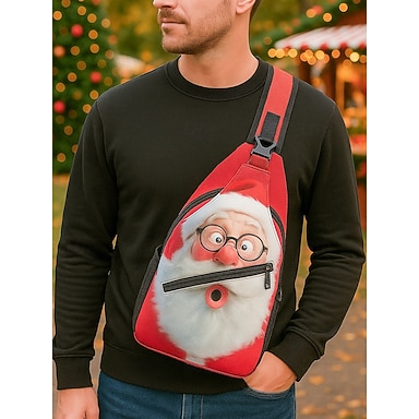 unisex julenissens slyngeveske, festlig crossbody-brystveske med tegneserietrykk, lett reiseskulderryggsekk til høytidsgave og daglig bruk