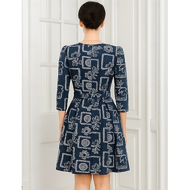 A-linje Te-lengde Ballkjole Festkjole Swingkjole Kortermet Crew-hals Elegant Årgang Fest Bryllupsgjest Polyester Kjole til brudens mor med Broderi Fargeblokk