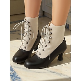 vintage viktorianske snørestøvler for kvinner – tofargede støvletter i imitert skinn i midten av leggen med tykk hæl, perfekt for cosplay, festivaler og renessansemesser