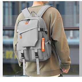 unisex grå bruksryggsekk – vannavstøtende skole- og reiseveske med spennestropper og flere oppbevaringslommer