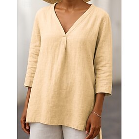Damskie Koszula Bluzka Sztuczna bawełna len Kieszeń Jednokolorowe Elegancki Codzienny Rękaw 3/4 Półgolf Zwykłe topy Codzienny Czarny Khaki Lato