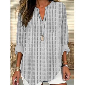 Damskie Koszula Guziki Nadruk Prążki Aktywny Codzienny Elegancki Długi rękaw Kołnierzyk koszuli Zwykłe topy Codzienny Święto Niebieski Rumiany róż Szary Wiosna Jesień