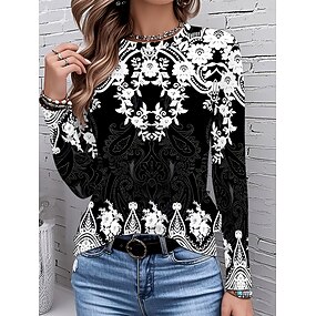 T-shirt damski z długim rękawem Okrągły Dekolt Długi Rękaw Tunika Kwiatowy Graficzny Paisley Vintage Stylowy Klasyczny Regularne Topowe Codzienne Weekendowe Z nadrukiem Różowy Niebieski Fioletowy