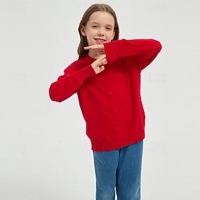 Dzieci Dla chłopców Sweter Jednokolorowe Długi rękaw Guziki Na zewnątrz Moda Czerwony Jesień Odzież 4-12 lat