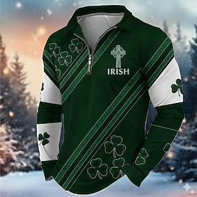 Koszulki polo z koniczyną na Dzień Świętego Patryka dla mężczyzn długi rękaw nowoczesny styl casualowy codzienne festiwalowe zamek nadruk 3D wiosna jesień ciemna zieleń zieleń