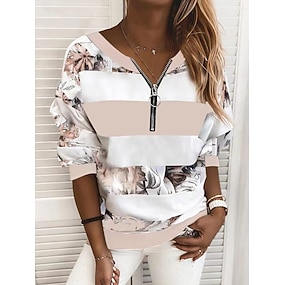 Damskie Podkoszulek Zamek Quarter Zip Graficzny Geometryczny Kolorowy blok Tropikalny Hawajskie Elegancki Krótki rękaw Półgolf W serek Zwykłe topy Codzienny Sport Wyjściowe Czarny i biały Czarny
