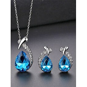 damski komplet biżuterii ze stopu metali i cyrkonii – elegancki naszyjnik i kolczyki w kształcie łezki, dostępne w wielu kolorach, idealne na wesela i wieczorne imprezy