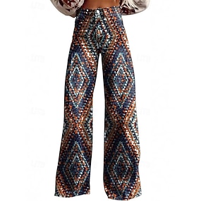 Retro / vintage 1970 Y2K Spodnie Spodnie z szerokimi nogawkami Hipisowskie Dyskoteka Wysoka talia Plemienny Styl sztucznych dżinsów Strój na bal maskowy Damskie Karnawał Codzienne Festiwal Muzyczny