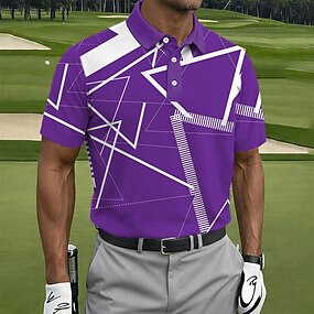Męskie Geometryczny Golf Koszulki sportowe polo Koszulki polo Koszule z kołnierzykiem Codzienny Athleisure Guziki Lato Wiosna Niebieski Fioletowy Zielony