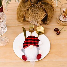 dekoracja sztućców w kształcie krasnala, kratkowany pojemnik na sztućce w kształcie krasnala, zestaw stołowy w kształcie starca leśnego, dekoracja stołu