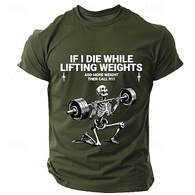 Męska koszulka graficzna śmieszny schemat 'Jeśli umrę podczas podnoszenia ciężarów dodaj więcej ciężaru a potem zadzwoń po 911' z krótkim rękawem
