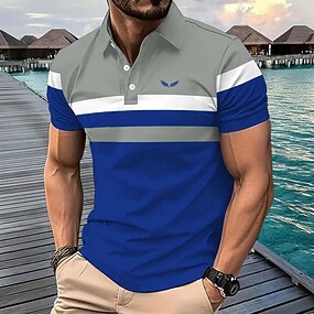 Męskie Prążki Gra polo Krótki rękaw Koszulki polo Koszule z kołnierzykiem Biznesowy swobodny Szkoła Na zewnątrz Athleisure Dzienne zużycie Druk 3D Lato Czarny Czerwony Niebieski