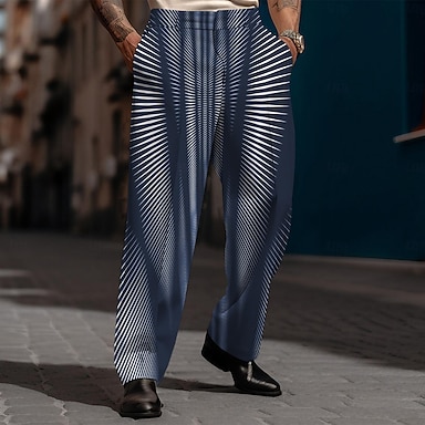Męskie Prążki Wzór geometryczny Spodnie Garnitury Średni Talia Codzienny Vintage Retro Święto Streetwear Prezenty na Dzień Taty Płaski przód Spodnie z prostą nogawką Lato Wiosna Jesień Druk 3D