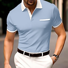 Męskie Koszulka polo Koszula golfowa Praca Codzienny Klapa Prążkowany kołnierzyk polo Krótki rękaw Podstawowy Nowoczesny Kolorowy blok Guzik Wiosna i lato Regularny Czarny Turkusowy Żółty Granatowy