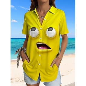 Damsza koszula z długim rękawem zapinana na guziki bluzka z grafiką 3D codzienna stylowa krótkie rękawy z kołnierzykiem regularne topy codzienna żółty niebieski zielony lato wiosna