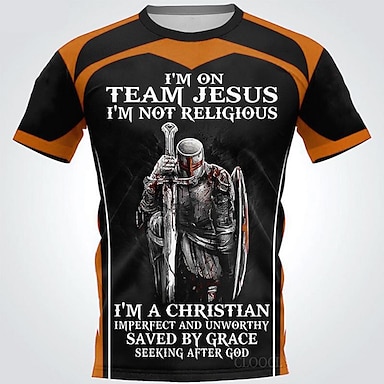 Męska koszulka krzyżowców Biblia kolorowe bloki koszulka żołnierza z krzyżem templariuszy hasła krótkie rękawy 3D nadruk koszulka z okrągłym dekoltem vintage sportowy codzienny na świeżym powietrzu