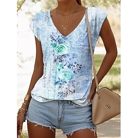 Damskie Top z ramiączkami Nadruk Kwiaty Elegancki Codzienny Bez rękawów W serek Zwykłe topy Codzienny Niebieski Czerwony Zielony Szary Lato