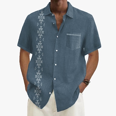 Męskie Geometryczny Etnické Kokopelli Koszula Codzienna koszula Zapinana na guziki koszula Krótki rękaw Vintage Retro Streetwear Urlop Święto Lato Wieczorne Druk 3D Jedna kieszeń z przodu Koszula z