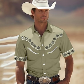 Męskie Koszula Koszula westernowa Kowbojska koszula Krótki rękaw styl zachodni Plemienny Lato Wiosna Kołnierzyk koszuli Żółty Zielony Khaki Ciemnoniebieski