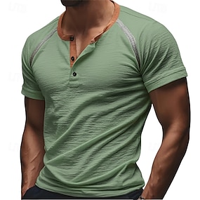 Męskie Podkoszulek Koszula Henley Koszulki Koszulka z krótkim rękawkiem Krótki rękaw Henley Lato Wiosna Równina Moda Designerskie Podstawowy Guziki Urlop Ulica Wyjściowe Czarny Niebieski Zielony Top