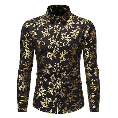 Męskie Koszule eleganckie Koszula zapinana na guziki Koszula z kołnierzykiem Kwiaty Ślub Praca Wino Czarny Biały Granatowy Długi rękaw Wieczorne Wiosna i jesień Odzież Przycisk w dół