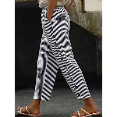 Damskie Bezczelny Spodnie Moda Moda miejska Pełna długość Natutalne Prążki Kieszeń Elastyczny pas Wygodne Na zewnątrz Wygodny Ulica Wyjściowe Czarny Biały Niebieski Lato Regularny
