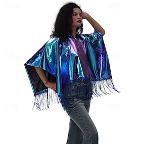 Lata 80 Hip pop Metaliczny błyszczący Peleryna Hipisowskie Grzywka Strój na bal maskowy Damskie Strój karnawałowy Karnawał Mardi Gras Spektakl Impreza Parada równości Dla dorosłych Płaszcz