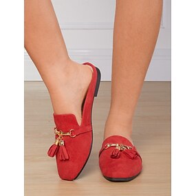 damskie czerwone eleganckie klapki ze sztucznego zamszu z frędzlami i złotym łańcuszkiem na co dzień i do biura