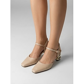 Damskie morelowe, skórzane czółenka typu slingback – szykowne, kwadratowe obcasy z rzeźbionym, złotym, metalowym obcasem blokowym, idealne do biura i na spotkania biznesowe &formalne wydarzenia