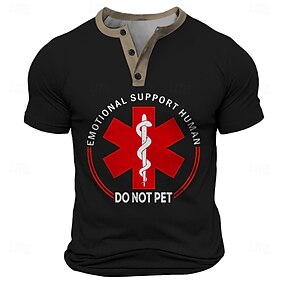 Męskie Podkoszulek Koszula Henley Krótki rękaw Podkoszulek Druk 3D Henley Koszula Sport Moda Codzienny Ulica Sporty na świeżym powietrzu Codzienny Czarny Czerwony Niebieski Lato Wiosna Na każdy sezon