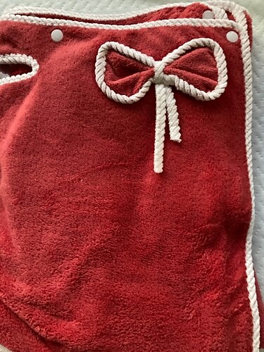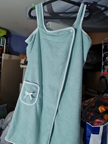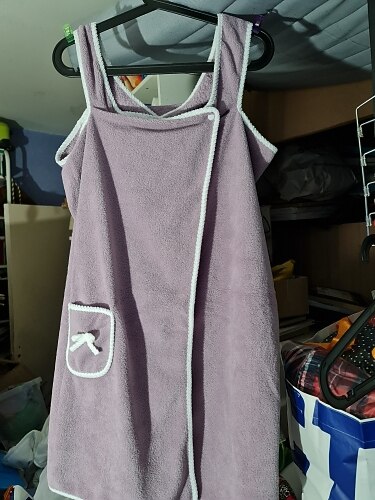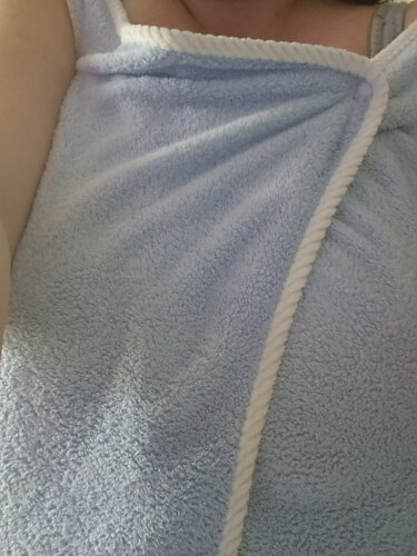 Comfy right out of the shower, I like that it has snaps and a pocket Comfy right out of the shower, I like that it has snaps and a pocket