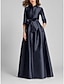 Krój A Sięgająca podłoża Sukienka koszulowa Sukienka dla gościa weselnego Suknia Sukienka dla matki panny młodej Rękaw 1/2 Kołnierzyk koszuli Minimalistyczny Formalny Gość weselny jesień Satyna z