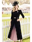 Dwuczęściowa sukienka kolumnowa do kolan Sukienka balowa Sukienka na przyjęcie Sukienka koktajlowa Sukienka matki panny młodej Długi rękaw Okrągły dekolt Elegancka Vintage Impreza z haftem